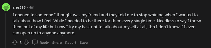 Within mere seconds, many men shared their own stories of how they opened up to someone, and it backfired on them. Here are sixteen of the most emotional replies:
