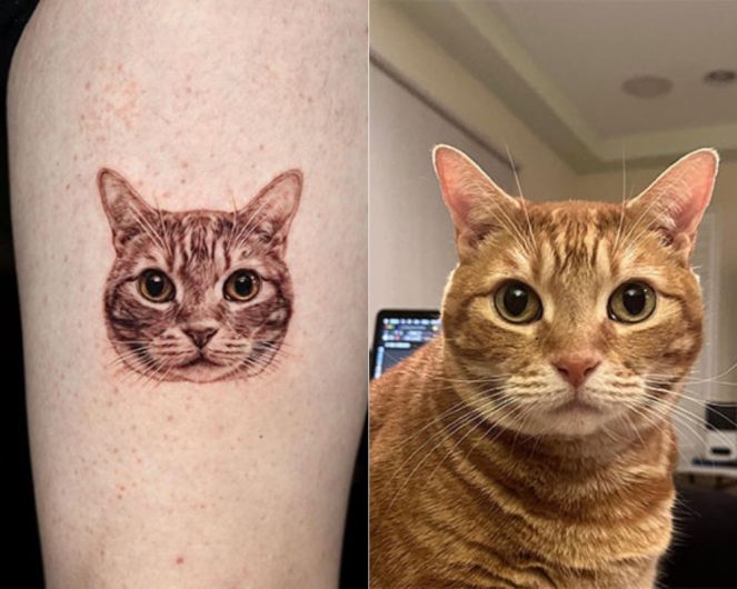 From the delicate whiskers to the texture of its fur, this tattoo is more than just a portrait. It truly reflects the cat’s personality, not just its physical features.