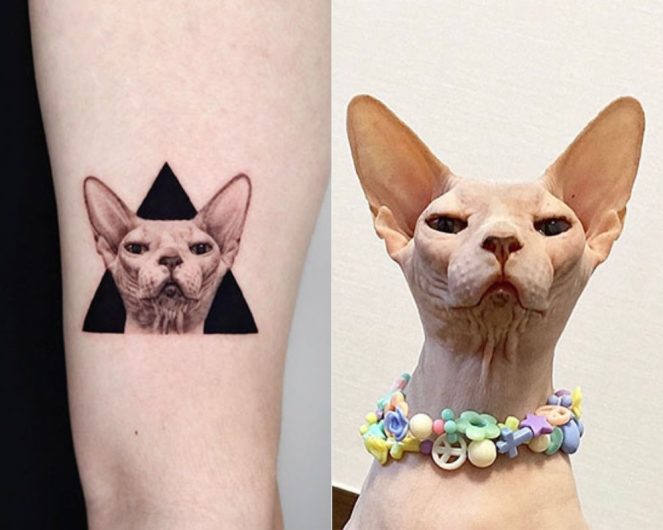 This Sphynx cat tattoo is a true work of art, capturing the unique features of the breed. The smooth skin, sharp ears, and intense eyes stand out beautifully.