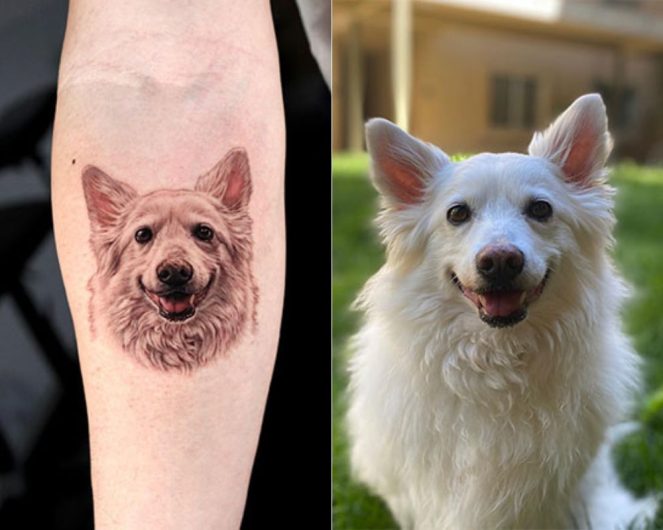 You can see the dog’s playful spirit, with its smile and soft fur almost jumping out of the tattoo.