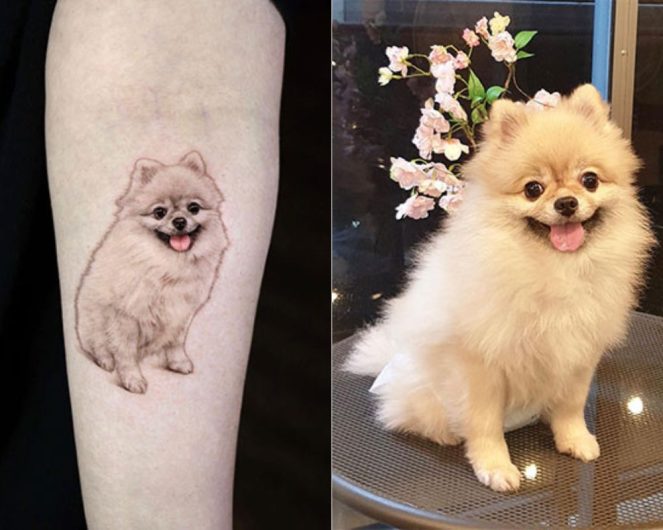This Pomeranian tattoo is beyond cute! Yeono captured the dog’s playful spirit with its bright eyes and fluffy fur. It almost feels like you can feel the happiness through the ink.