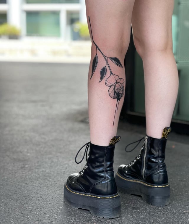 26. Done on my calf by Russell @findyoursmiletattoo when he was visiting Everblack Studio NYC, healing really nice he crushed it