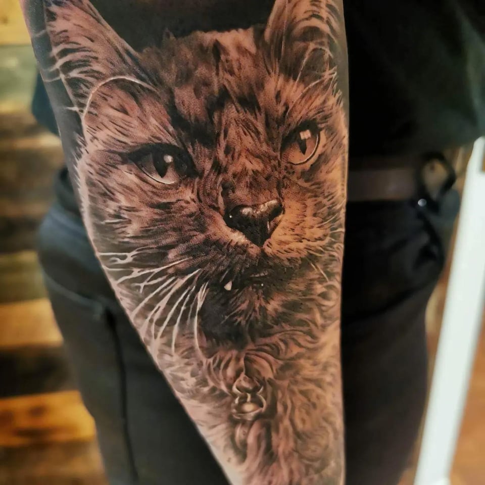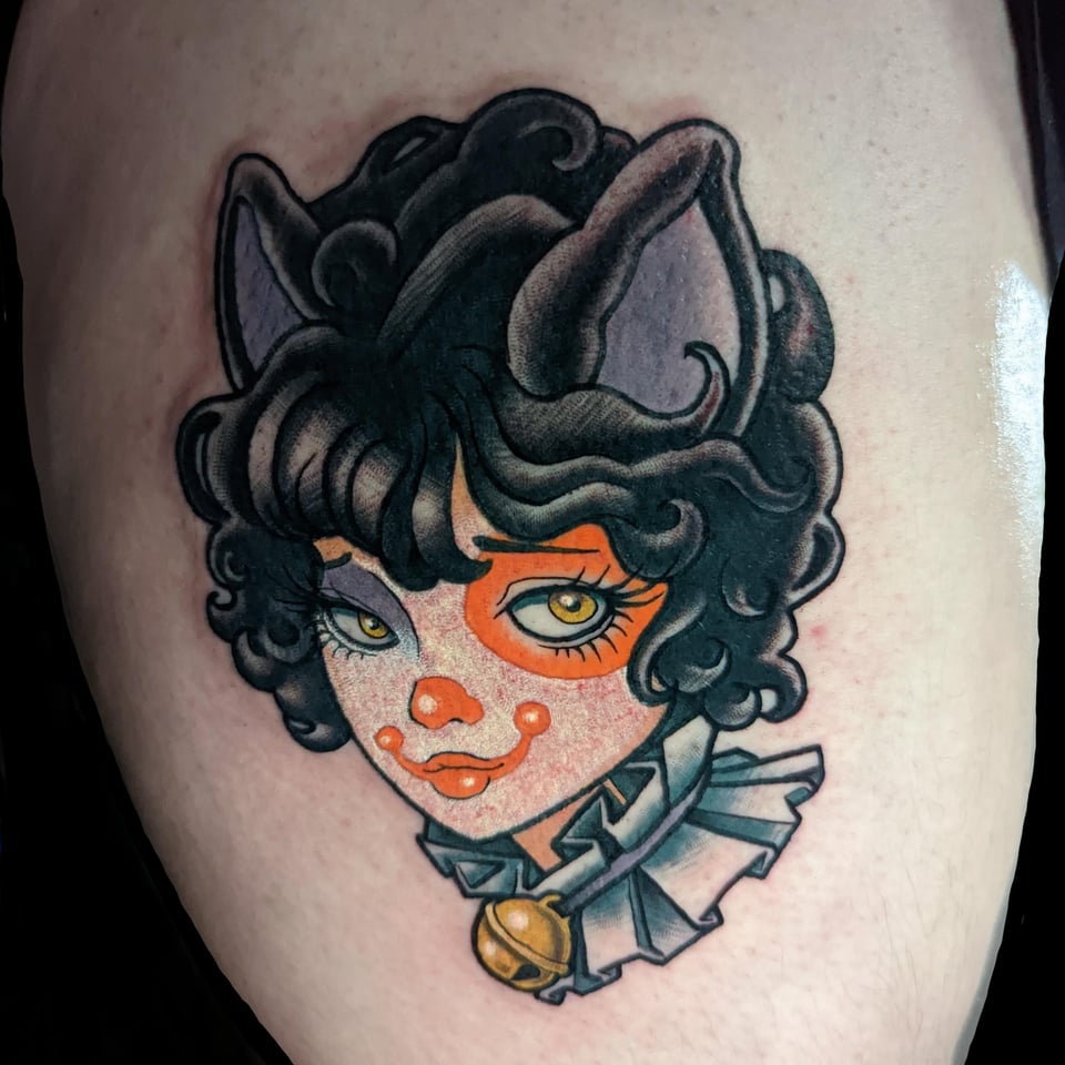 2. Cat clown girl done by me @schuylertattoo at Tramp Art Studios in Savannah, GA
