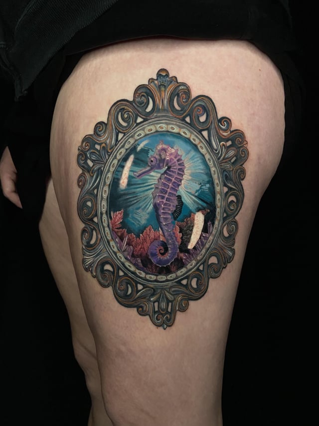 10. Seahorse in a bubble frame by @julesgracetattoos at @urbanstattoo in Arlington, TX