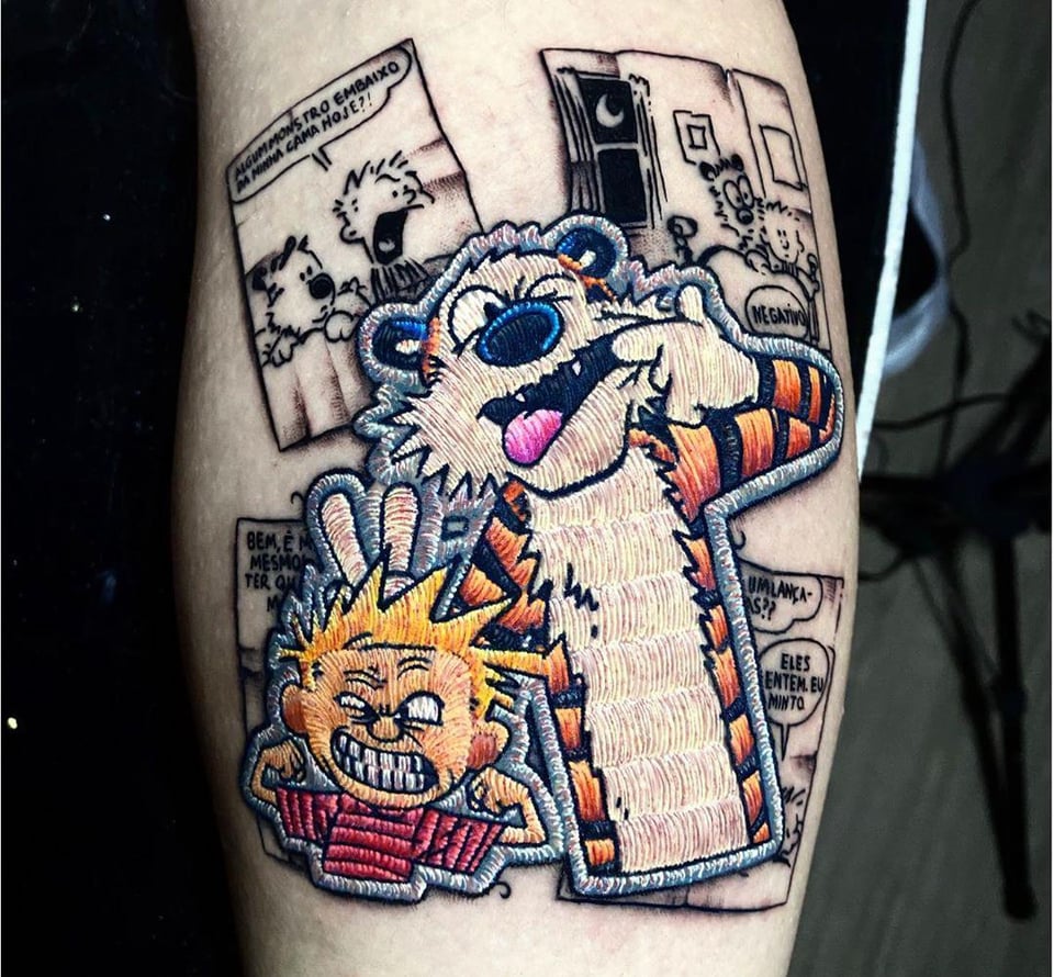 6. Calvin and Hobbes embroidery patch by Duda Lozano in Sao Paolo, Brazil