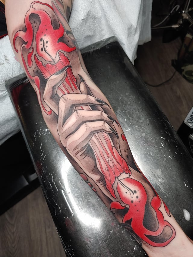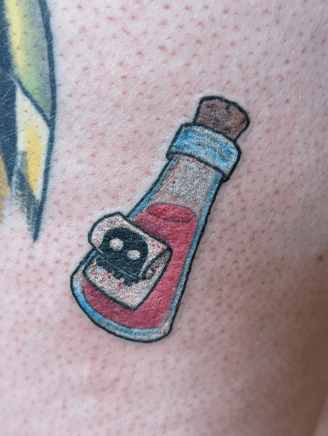 36. Kuzco’s Poison by Laura McClintock at Nevermore Tattoos, Stirling, Scotland.