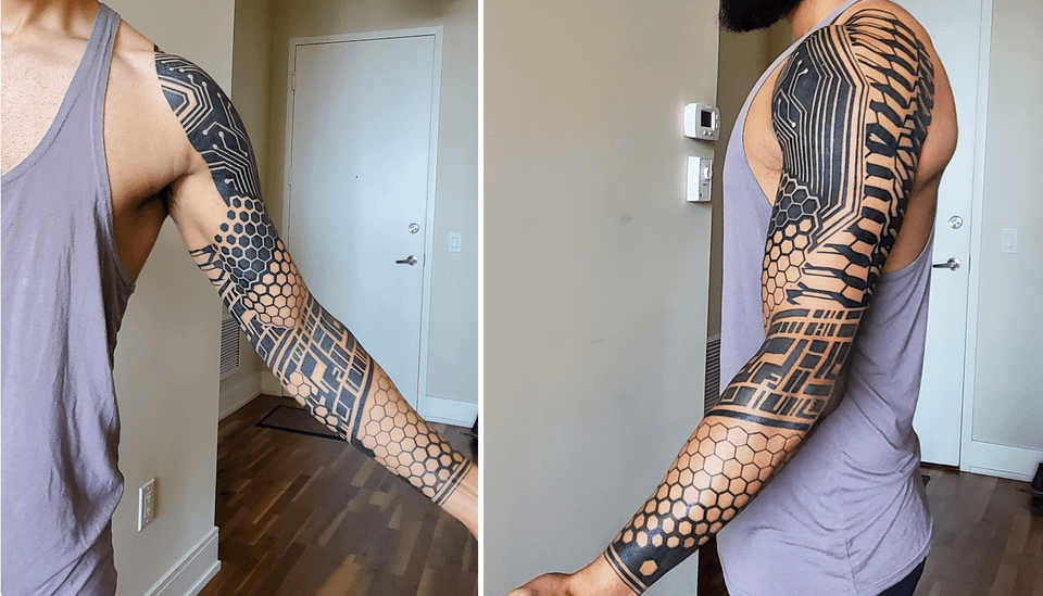 25. My Geometric Cyberpunk-inspired Sleeve – Done by Jon @ Golden Iron Tattoo Studio [Toronto, Canada]