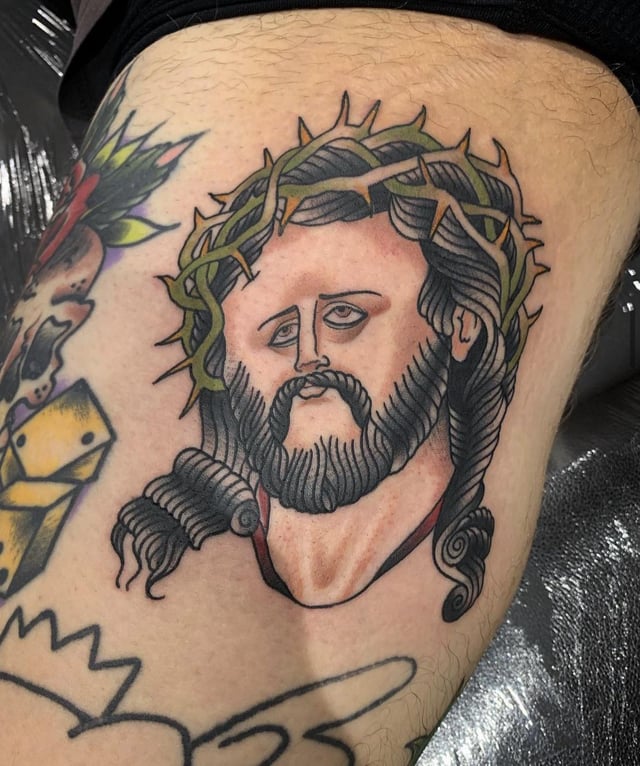 35. Tiny Face Jesus by Will Thomson, Heritage Tattoo, Brighton UK