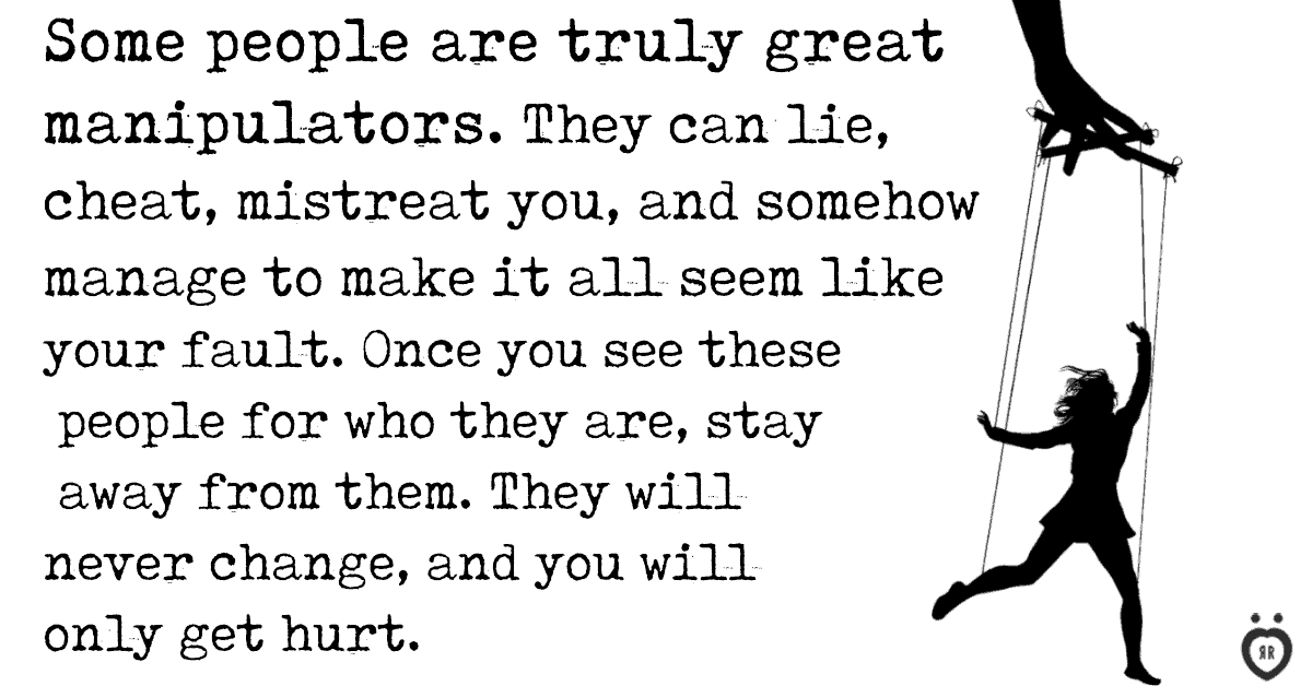 I can’t ever win from you. Yeah, it’s probably all my fault again. Why can’t you ever love me just the way I am? These are just some phrases a narcissist will use to manipulate you into thinking that they’re innocent, that they need to be consoled, and that it’s all your fault for bringing any issue up with them. If they keep playing the victim, don’t fall into their trap. And don’t back down from getting things done your way.