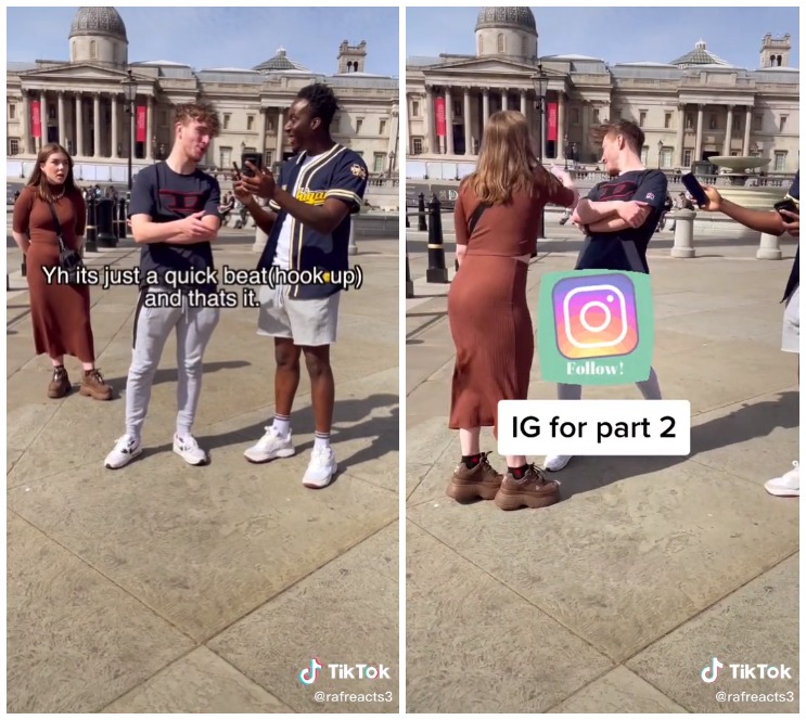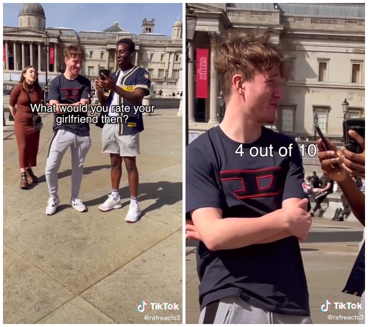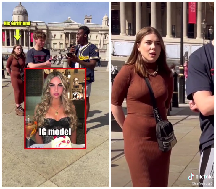 A TikToker user named @rafreacts3 posted a clip in which a man rates a photo of an Instagram model. An anonymous man from London gave her a ten out of ten with no regrets. The man even said the model is a good wife. He hadn’t noticed his girlfriend standing unnoticed behind him.