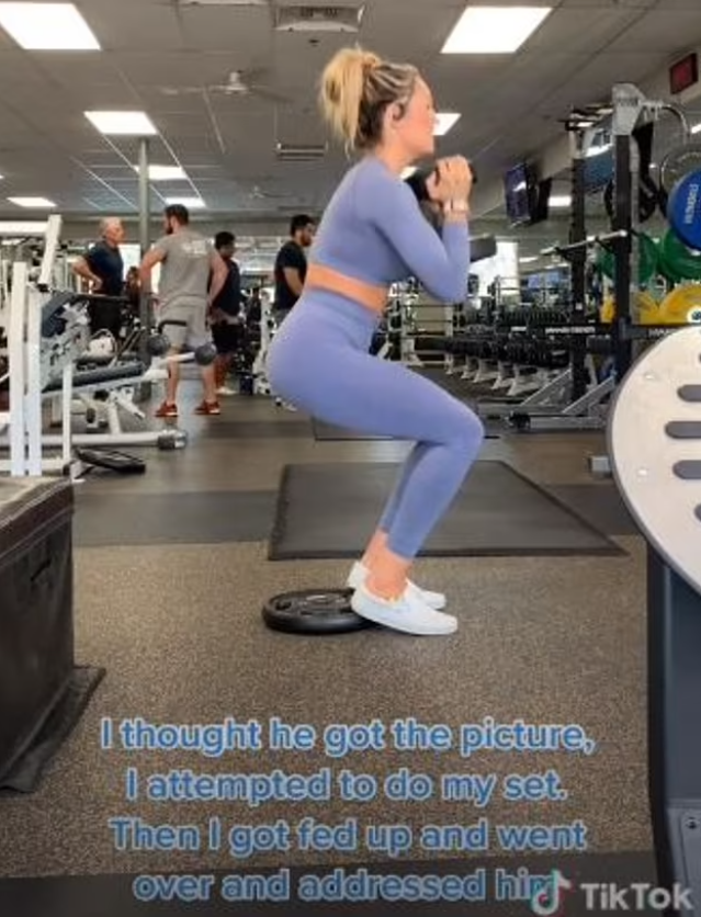 Then, when she did another set, she realized the stranger was still staring at her. She says she got so fed up with his behavior that she confronted him about it.