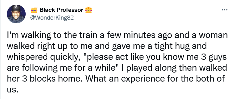 A post went viral when a man Tweeted what happened to him as he was going back home one night, and a random woman hugged him and asked for help.