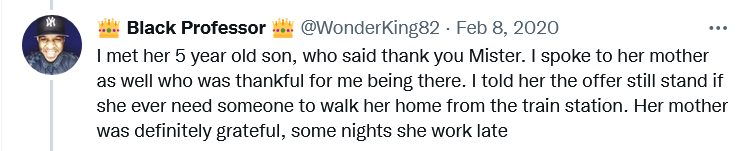 1. In a world where we hear such negative stories in the media, this story was a breath of fresh air. So happy this positive story was shared. I’m proud that man walked the woman home.