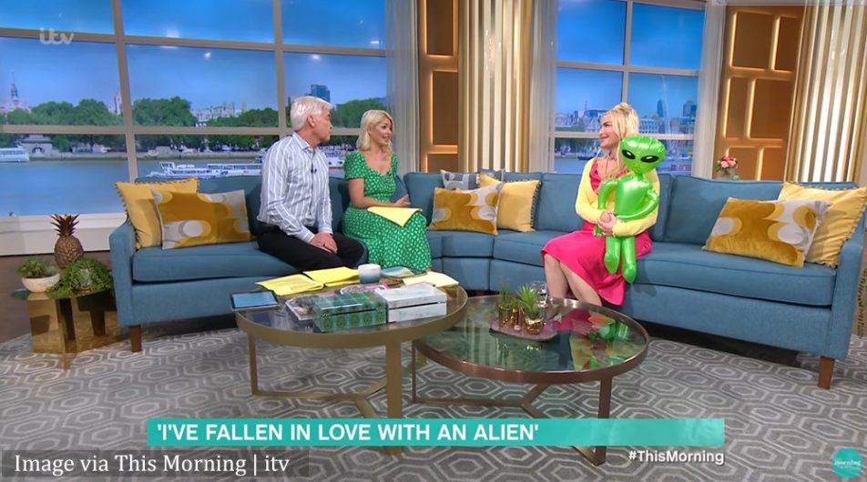 She appeared on the show with an inflatable green alien, describing it as a placeholder and a symbolic representation of her partner.
