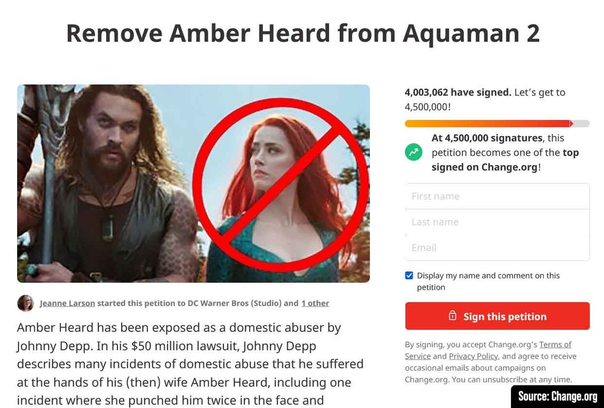 Jeanne Larson created a massive petition on Change.org called “Remove Amber Heard from Aquaman 2,” It has amassed over 4 million signatures at the time of writing this article. This petition has gone massively viral, with fans of Johnny Depp constantly commenting showing support and love.