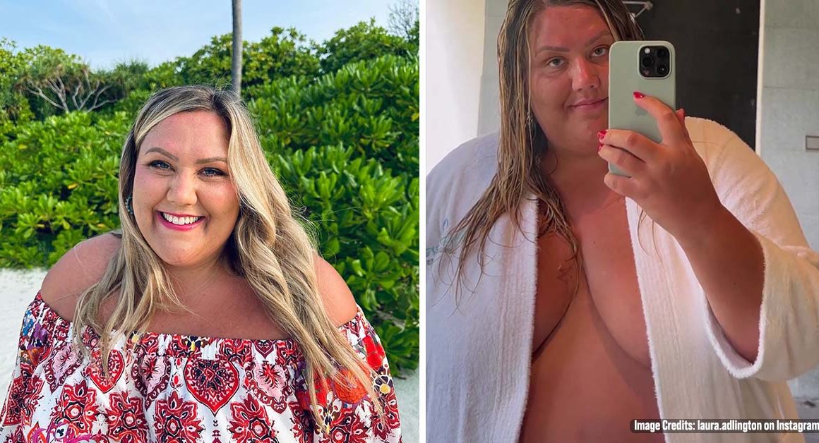 Bake Off star Laura Adlington went topless as she hit out at fancy salons for failing to provide robes for plus-size guests.
