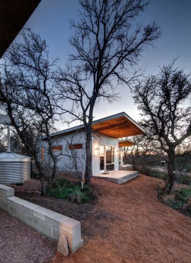 The four couples that have been best friends for 20 years decided to build their little town to be closer to each other and the environment! Four tiny houses face the Llano river outside Austin, Texas. It’s called the ‘Llano Exit Strategy.