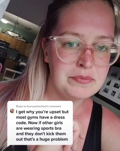 “So I just went to the gym, and the lady at the front desk said they have a policy, you’re not allowed to wear sports bras to the gym, that you ‘can’t be showing your belly,’”