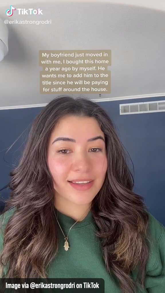 The queen of our story is Erika Strong Rodri; she works as a realtor and also shares her journey on TikTok. In one of her videos that received over 1.4 million views, she expressed how her boyfriend just moved in and wanted his name on the house’s deed because he’s going to be “paying” for stuff around the house.