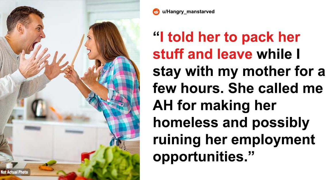 “I told her to pack her stuff and leave while I stay with my mother for a few hours. She called me AH for making her homeless and possibly ruining her employment opportunities.”
