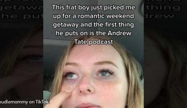A frat boy has picked his girl for a romantic weekend getaway, and the first thing he puts on is Andrew Tate’s podcast