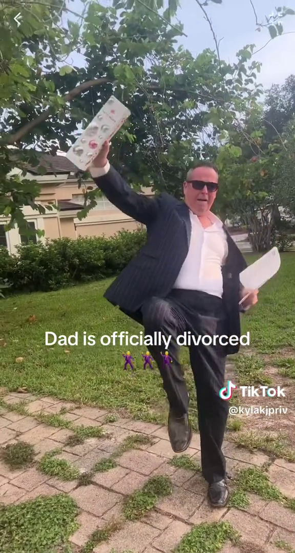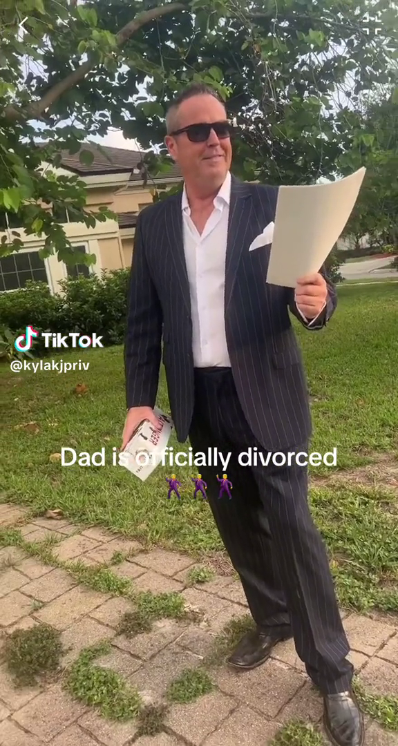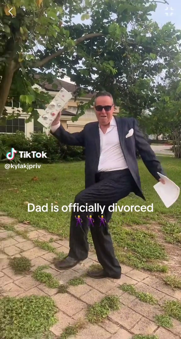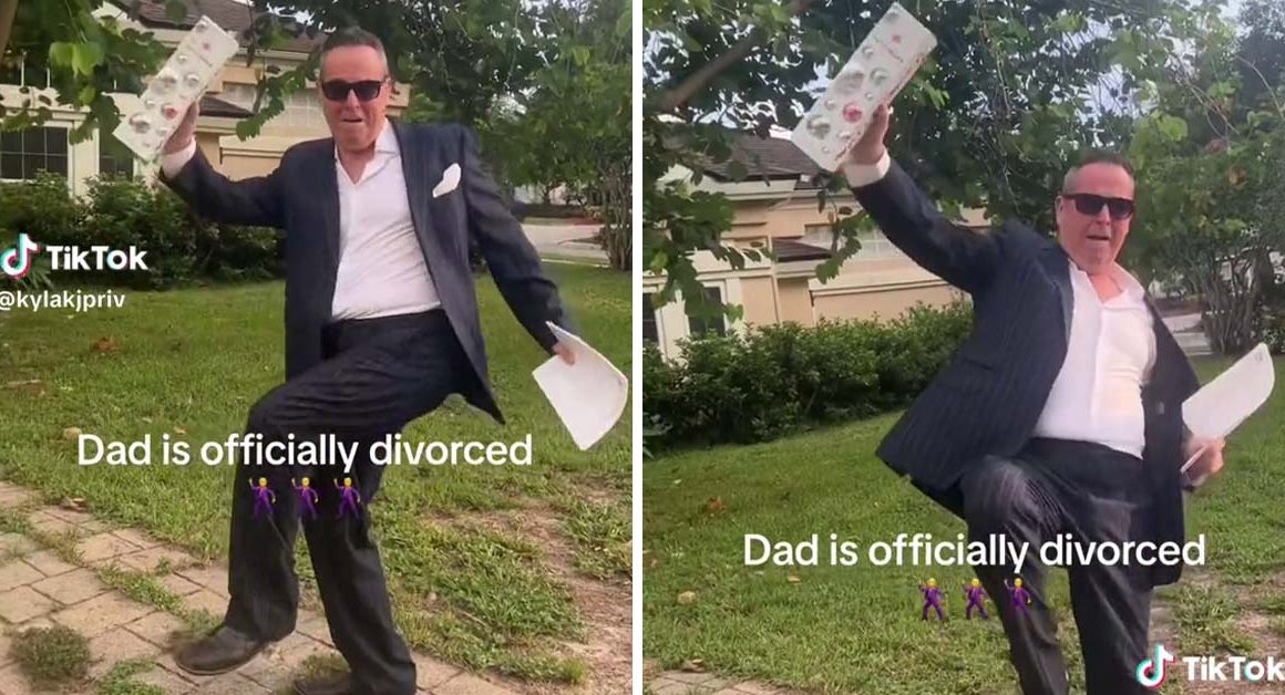 A video of a dad enthusiastically dancing in a suit after his divorce was finalized has gone viral on TikTok, and people can’t stop laughing.