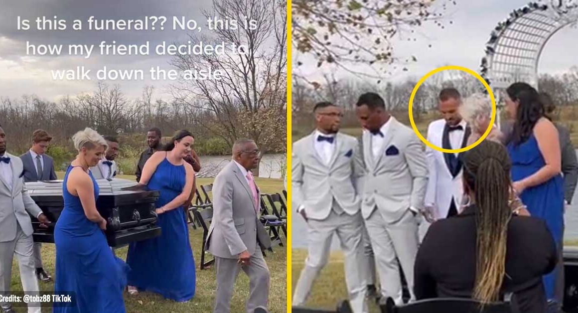 TikTok users bashed the groom for his senseless act and didn’t spare the bridesmaids and groomsmen, who hauled his coffin to the altar.