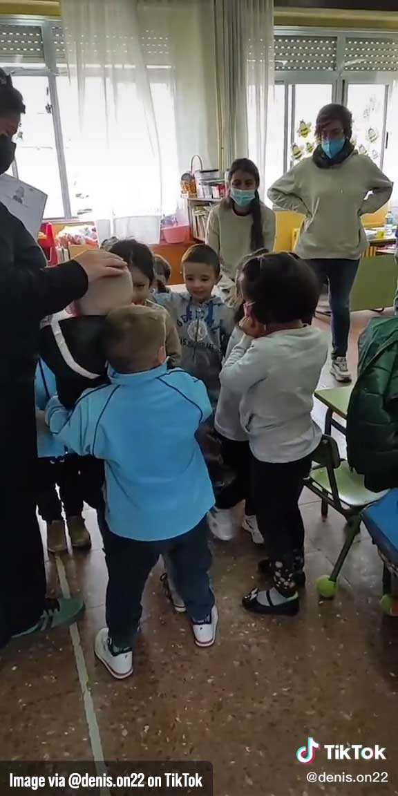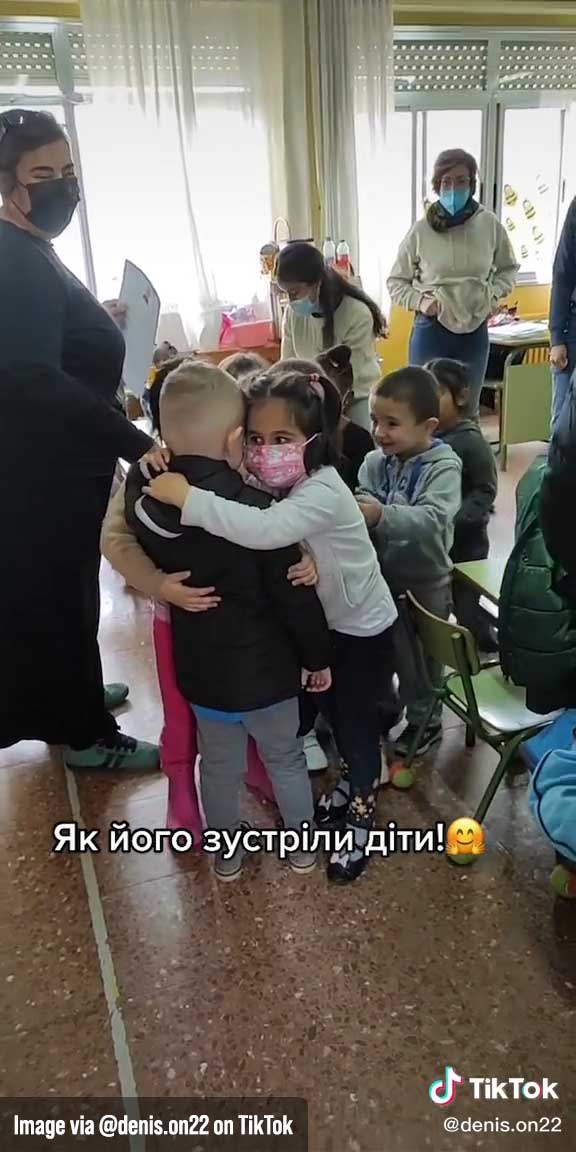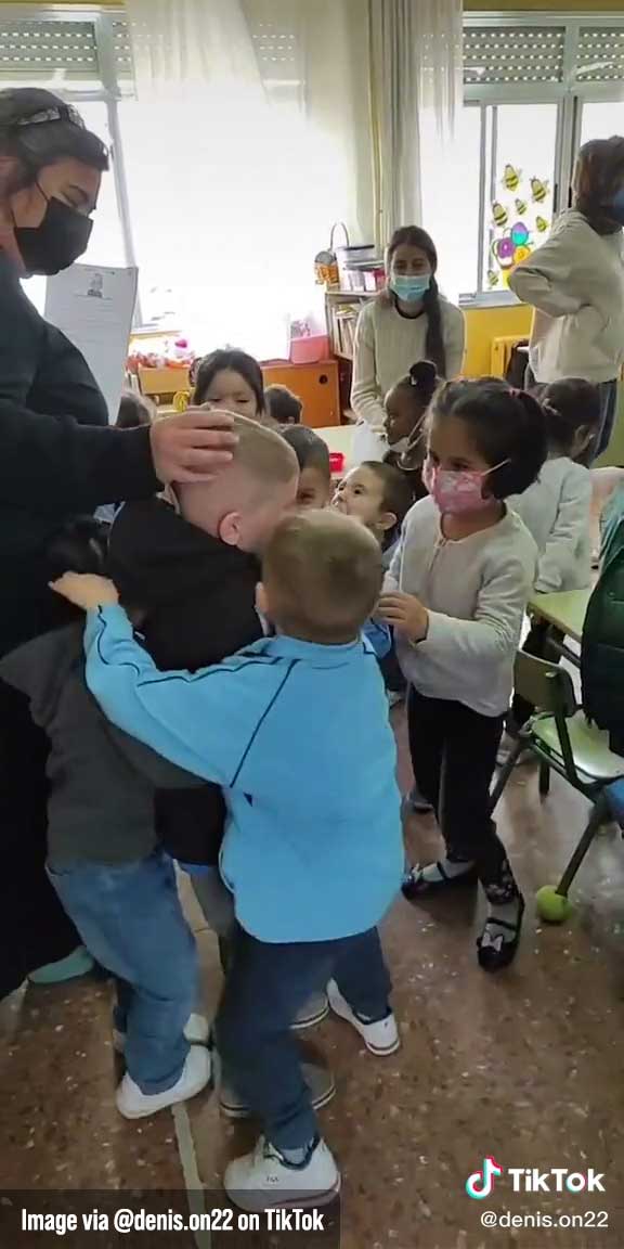 In the video, this boy went to CEIP Peru school. And as he entered the classroom, he was instantly met with immense love and care when all of his new classmates rushed to embrace and hug him.