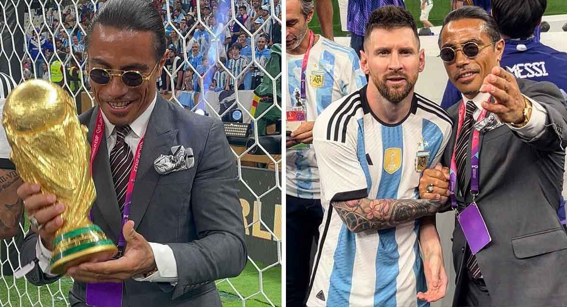 The Internet personality famously known as Salt Bae – real name Nusret Gokce, went onto the pitch after the winning team’s trophy celebrations and held the trophy in his hands. He was also seen biting into one of the winner’s medals as he posed for a photo.