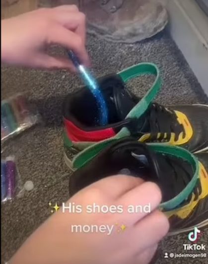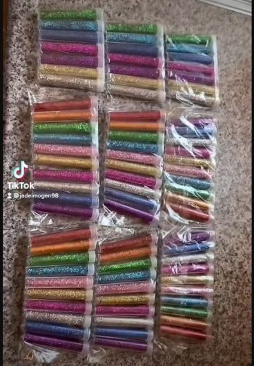 But before moving out, she decided to buy some 82 glitter tubes and poured them all over her ex-boyfriends things.