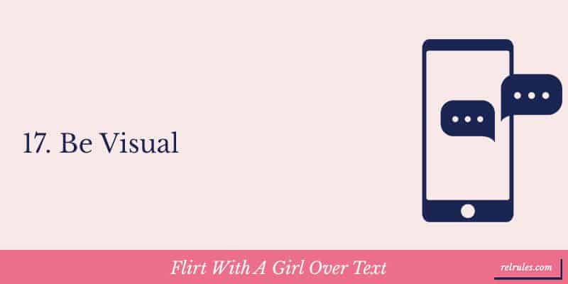 Make use of images whenever you can. Send her pictures! Of course, you shouldn’t be sending anything too graphic or erotic when you’re just starting out. However, feel free to send her pictures of your dog, the food you eat, or the book that you’re reading. This is a great way to liven up a conversation with someone through text.