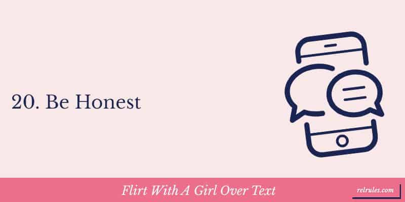 Somehow, even when it’s just through text message, a girl is going to be able to tell whether you’re honest or not. So, you just have to make sure that you’re truthful. There’s no point in lying anyway. If you want to be with her for the long term, you have to be honest, even at the start. You would never want to start a relationship off with lies.