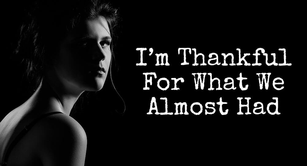 I’m going to choose to be thankful for what we almost had; how at one brief point in our lives, you chose to put me above anything and everyone else.