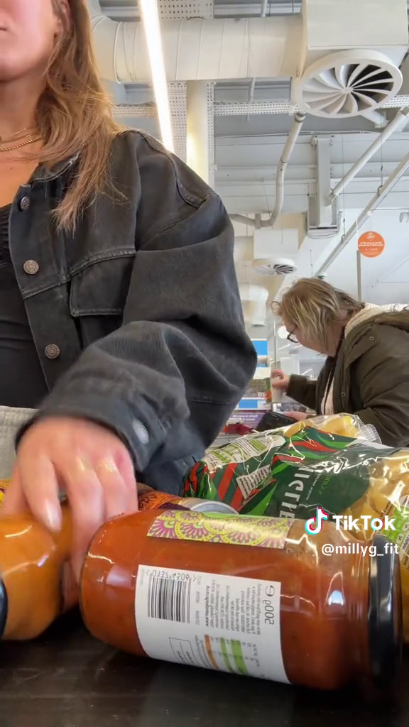 The TikToker then bought some pasta and jarred sauces from the store and put them in its food bank.