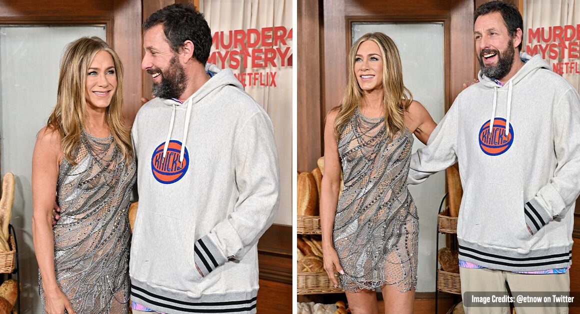 Jennifer Aniston looked stunning in her sheer silver mini-dress as she attended the premiere of her new Netflix film, Murder Mystery, with longtime pal and costar, Adam Sandler.