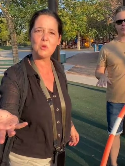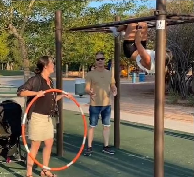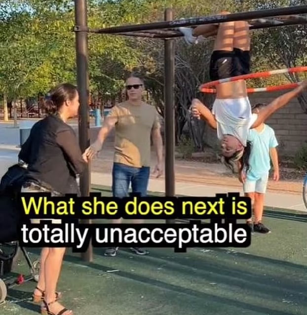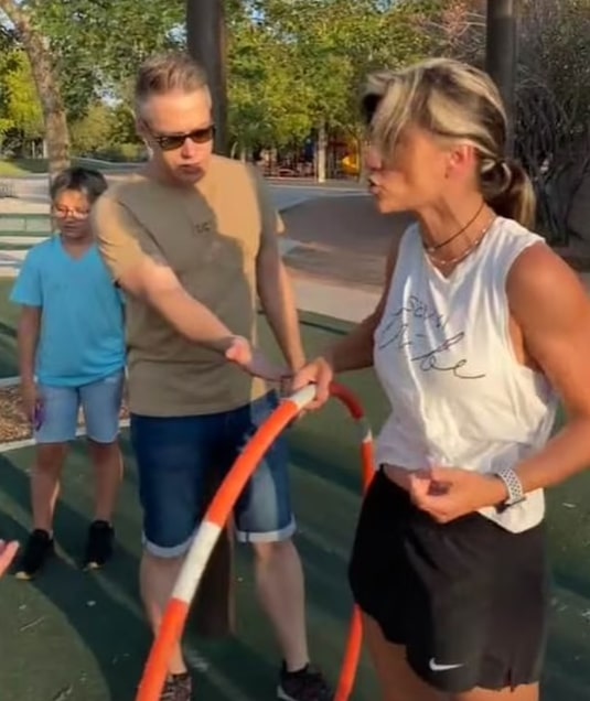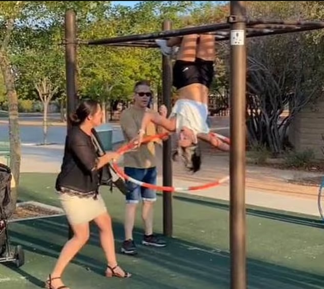 She tried ignoring the stranger, but when she saw her son videoing her hula hooping, she griped about everyone being on TikTok. When she finally grabbed Getti’s hula hoop, she threw it to the ground, forcing her off the monkey bars. She yelled at the guy filming, saying it wasn’t his business.