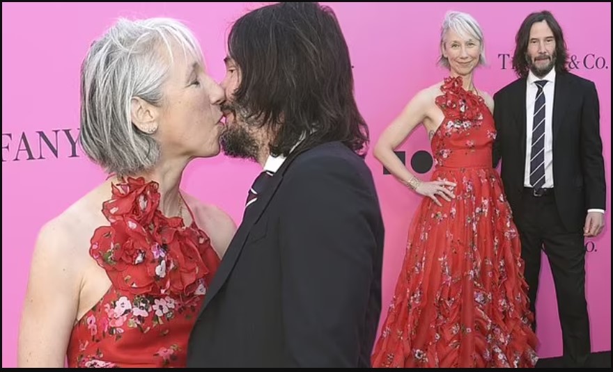 Grant, a renowned visual artist, has exhibited her work at MoCA for years. Her long red floral dress perfectly complemented Reeves’ suit and striped tie. The couple looked stylish and sophisticated as they posed for photos together, their love for each other evident.