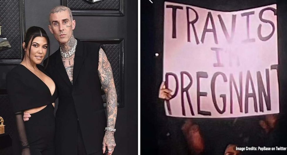 In the footage of the announcement shared on both Kourtney and Travis’ Instagram accounts, Barker could be seen all shocked as he stood on stage as one of his bandmates Mark Hoppus, said after noticing the sign,