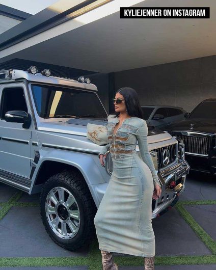 There was also a series of pictures posted by Kylie on Instagram of her outfit. When she posed for the camera in the photos, she leaned on a silver Mercedes-Benz as she leaned against it for support.