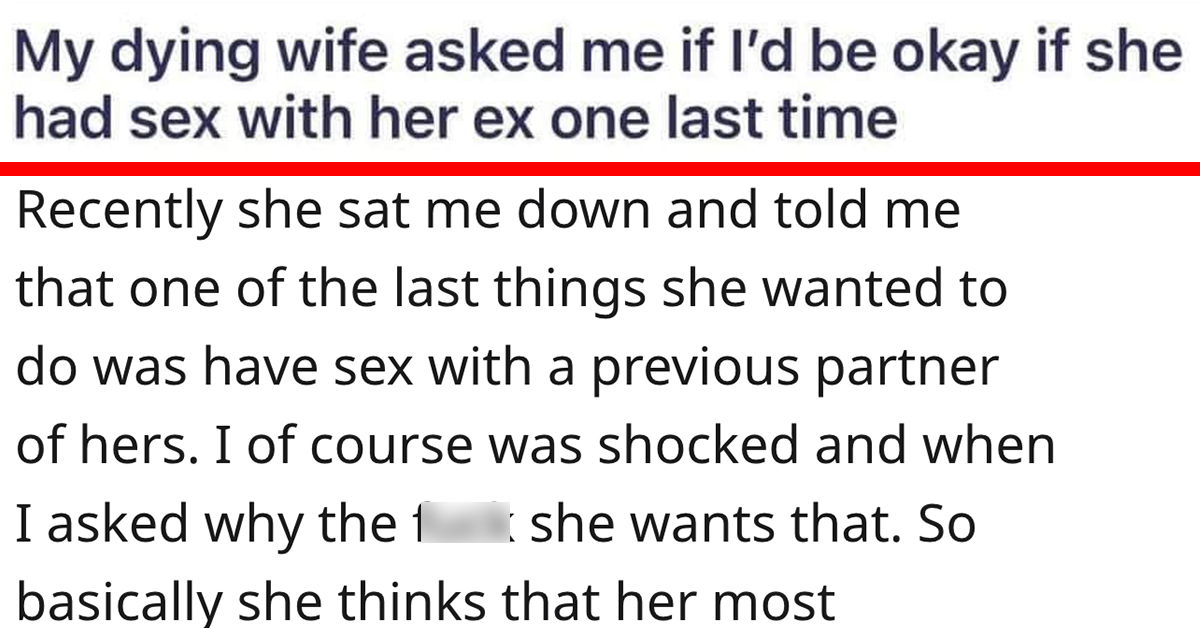 Source: Reddit – My dying wife asked me if I’d be okay if she had s*x with her ex one last time