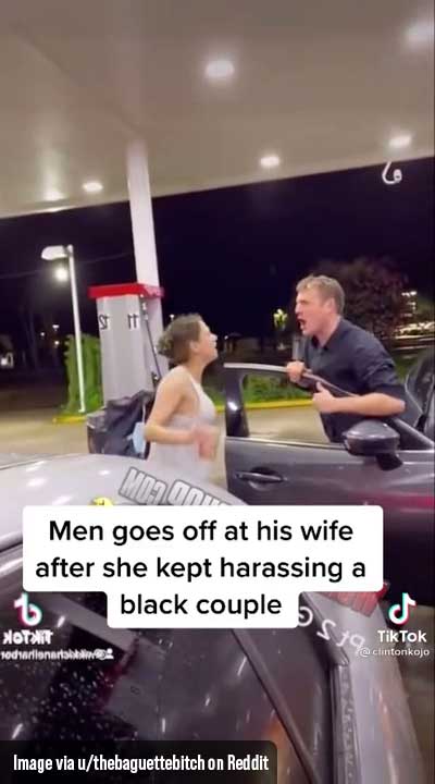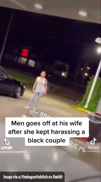 Today’s Reddit story comes from a user named thebaguettebitch; she uploaded a video on the PublicFreakout subreddit showing a man yelling and screaming at his wife after she started harassing a black couple at a gas station.