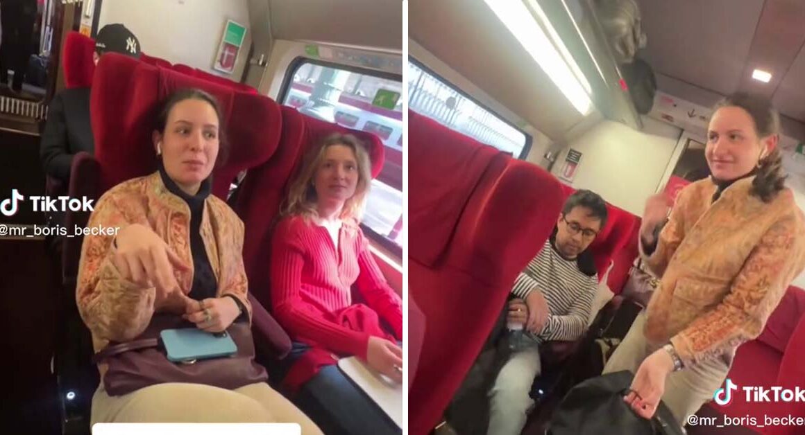 “But, you know,” the other woman said, trying to convince him to let the woman sit in his seat.