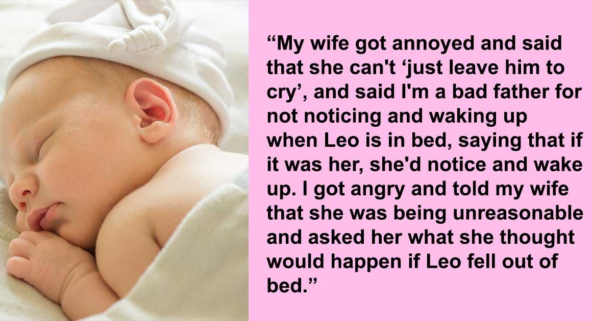 The new dad said he tried to talk to his wife about this issue and asked her not to put the baby in bed while he was asleep.