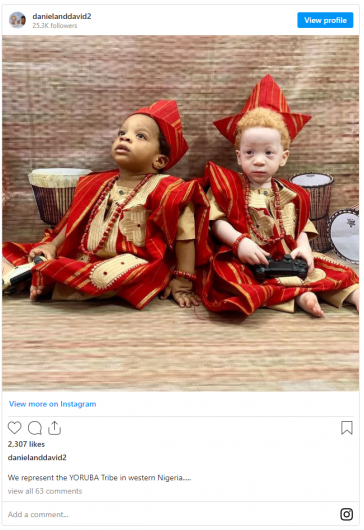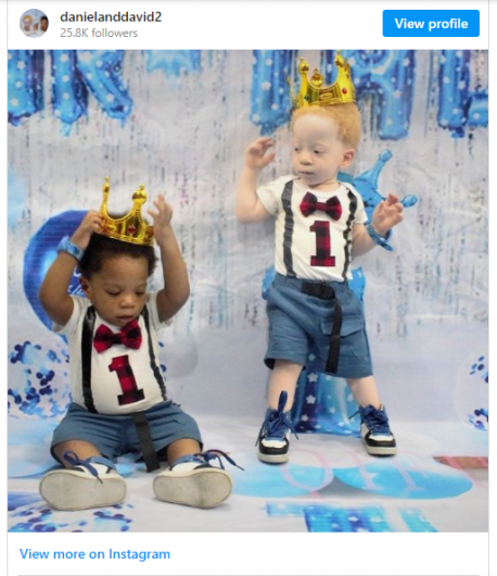 Daniel has dark skin and dark hair while his brother David has albinism. The contrast between the twins is really striking.