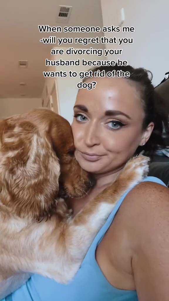 “When someone asks me – will you regret that you are divorcing your husband because he wants to get rid of the dog?” she wrote on her clip.