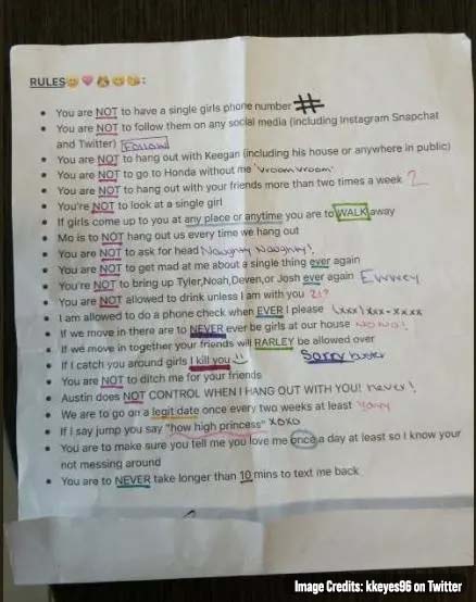 A woman took the whole ‘controlling’ concept to a whole new level and prepared a long list of 22 rules for her boyfriend. The anonymous lady listed the rules and strictly asked her boyfriend to follow the rules or else he would be in trouble.