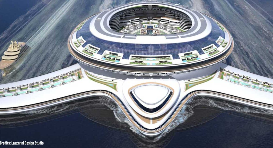 According to Daily Mail, “The floating city would accommodate 60,000 guests and even include a runway for planes as well as helicopter pads, Italian design studio Lazzarini said.”