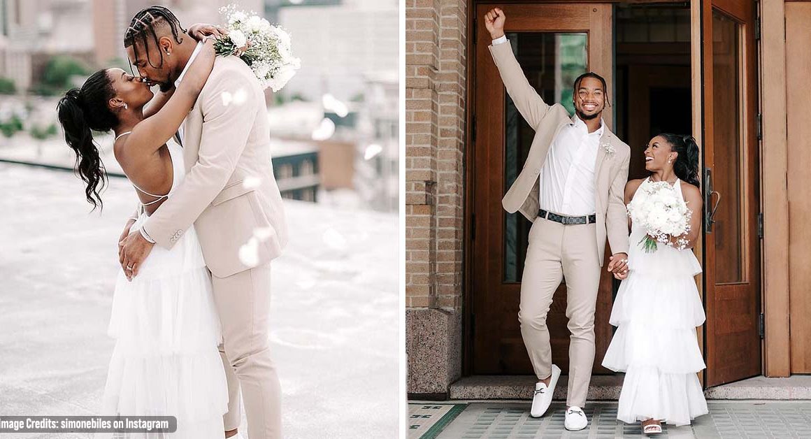 “We had to get married ‘legally’ in the U.S. – since our wedding will be a destination wedding,” Biles wrote on her Instagram Story. “We will be having a wedding in a couple of weeks.”