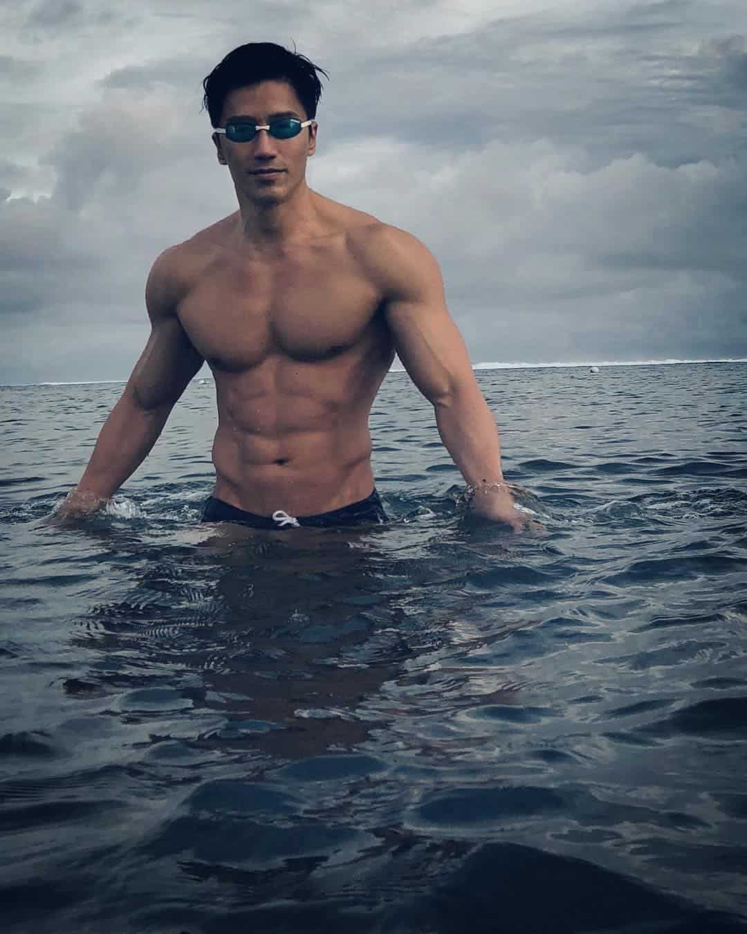 He tries to train at least 3 to 4 times a week for at least around 90 minutes a day. He focuses on a lot of swimming workouts to go along with his resistance training to help him maintain his strength and tone his muscles.