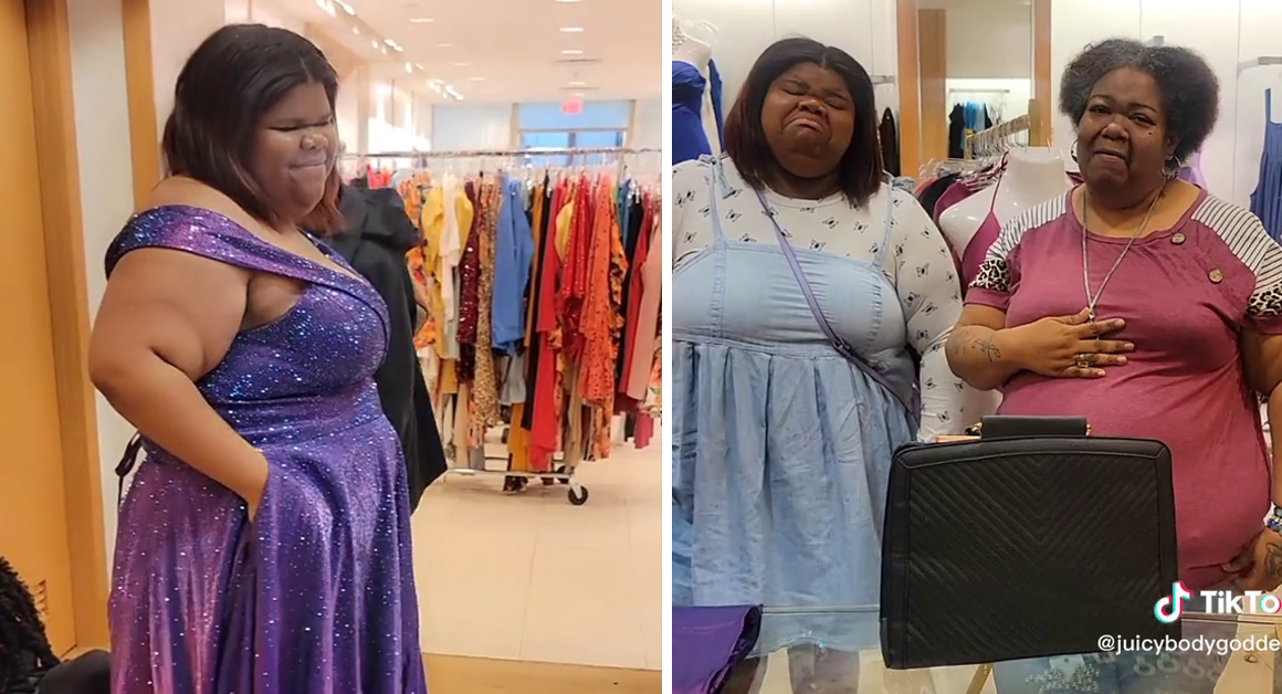 Elyse, who had only a $400 budget to buy her dream dress, tried on different prom dresses in the shop while Lucille filmed the entire scene and later posted it on her TikTok account.